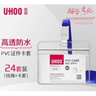 优和(UHOO)防水PVC证件卡套 横式 透明 24个卡套 24根挂绳 工作牌员工牌胸卡出入证6655-1SKU:yzwhyp855090