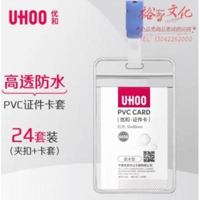 优和(UHOO)防水PVC证件卡套 竖式 透明 24个卡套 24个夹扣 工作牌员工牌胸卡 6656-6灰蓝夹扣SKU:yzwhyp855098