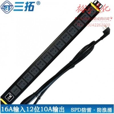 三拓 TS8212机柜PDU电源插排16A输入12位10a输出新国标孔SPD孔防雷模块2.5平方线芯4000WSKU:yzwhyp858578