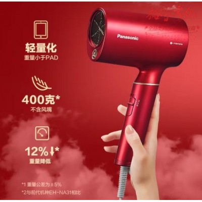 松下(Panasonic)电吹风机大功率高速大风力速干送老婆女友轻巧便携纳诺怡电吹风筒EH-JNA3E 红色SKU:yzwhyp863155