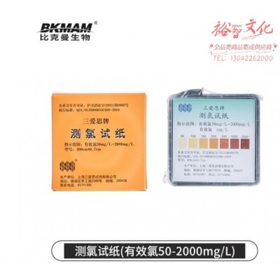 比克曼生物(BKMAM)测氯试纸余氯测试剂盒有效氯含量污水消毒液自来水检测 测氯试纸 50-2000mg/LSKU:yzwhyp864429