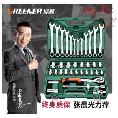 绿林(GREENER)专业汽修工具套装大飞棘轮套装梅花开口两用扳手全套37件SKU:yzwhyp864737