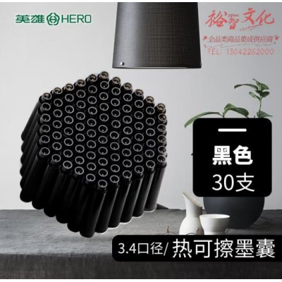 英雄(HERO)热可擦墨囊 2104RA小学三年级练字可替换热敏摩易擦 3.4mm口径 30支装 黑色SKU:yzwhyp864810