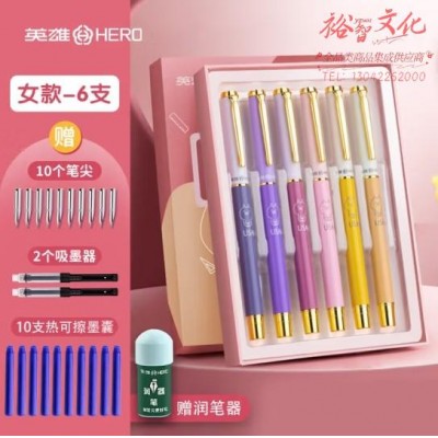 英雄(HERO)热可擦钢笔套装 卡通莫兰迪小学生三年级练字热敏可擦正姿可替换墨囊 女款-6支装(颜色随机)SKU:yzwhyp864818