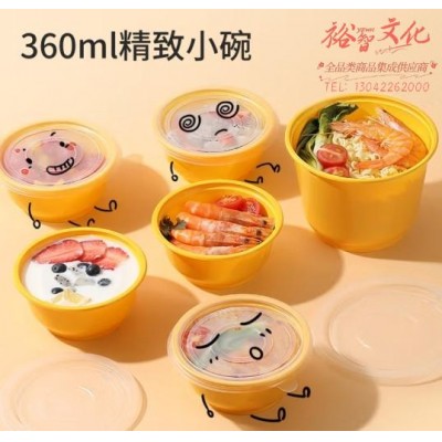 美丽雅 一次性饭盒圆形360ml*12套 快餐野餐打包加厚带盖塑料保鲜可微波SKU:yzwhyp864880