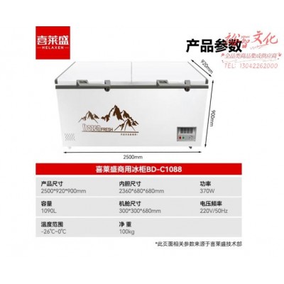 喜莱盛商用大容量冰柜冷柜保鲜柜冷藏冷冻雪糕卧式家用冰箱超市BD-T1088SKU:yzwhyp866028