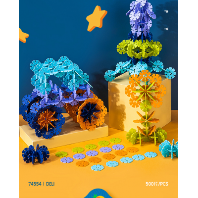 得力74554-雪花片(500片)(混)(箱)儿童积木拼插拼图智力开发积木拼装3-7岁动脑开发玩具雪花片积木儿童安全大号男孩多种拼插益智 雪花片500片
