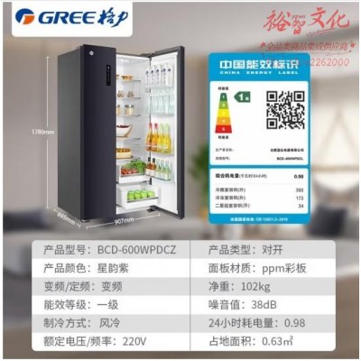 格力(GREE) 晶弘600L双开门冰箱 一级能效 风冷无霜智能全变频 家用节能电冰箱-33℃深冻BCD-600WPDCZ/星韵紫SKU:yzwhyp867810