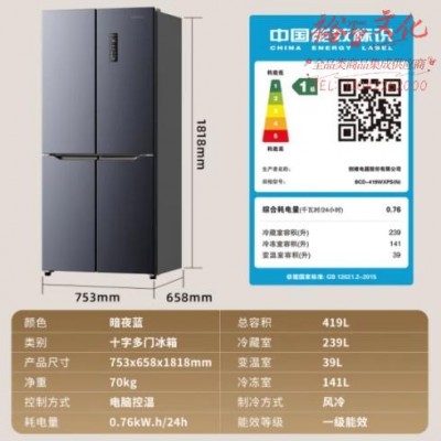 首页 > 电气设备 > 电冰箱 > 创维(SKYWORTH)四维鲜净419升风冷十字对开门四开门家用电冰箱一级能效变频超薄嵌入BCD-419WXPS(N)SKU:yzwhyp868725