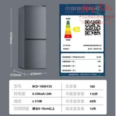 康佳180升两门双门二门冰箱节能低噪小型家用电冰箱三温区迷你小巧不占地两天仅约一度电BCD-180GY2SSKU:yzwhyp869097