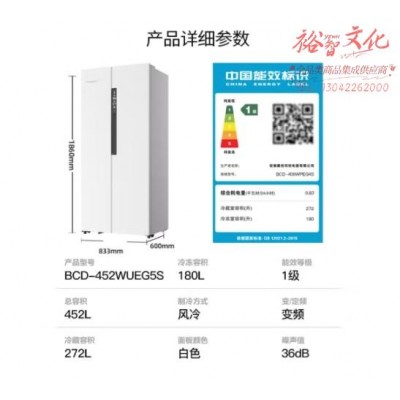 康佳60cm超薄零嵌入式452升对开双开门电冰箱家用小户型变频一级能效大容量底部散热BCD-452WUEG5SSKU:yzwhyp869114