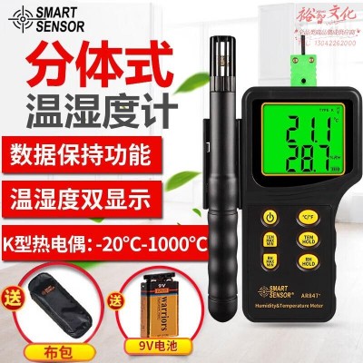 希玛 温湿度计数显空气高精度环境测试仪工业手持一体式温湿度检测仪 AR847分体式外接K型SKU:yzwhyp870588