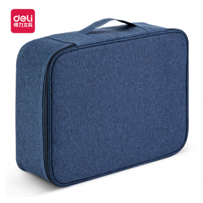 得力63758证件收纳包(深蓝)(个)文件资料分类收纳 手提大容量防水防尘 双层