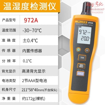 福禄克(FLUKE)手持式温湿度测试仪高精数显室内外工业测试生产巡检 F972A【内置传感器】SKU:yzwhyp870622