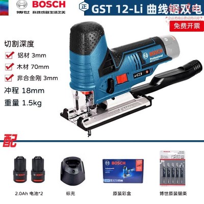 博世锂电充电式曲线锯GST12V-Li电锯 木工锯切割木材金属直线曲线切割 双电2.0AhSKU:yzwhyp870772