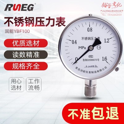 首页 > 仪器仪表 > 其他计量仪器 > 润能(RUNEG) 不锈钢YBF100高温蒸汽压力表304不锈钢 耐腐蚀测压表测水表测液体 0-0.4MPaSKU:yzwhyp870813