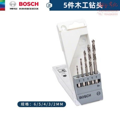 博世(BOSCH)5件金属麻花钻头套装六角柄高速钢磨制金工钻头2/3/4/5/6MM 5件木工钻头SKU:yzwhyp871040