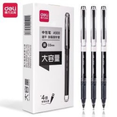 首页 > 办公用品 > > 得力(deli) DL-A500 大容量中性笔/无印风签字笔/学生考试笔 0.5mm/加强针管 12支装 黑色