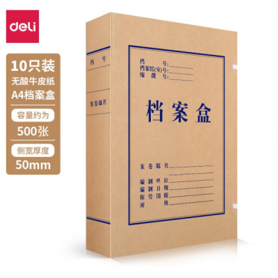 首页 > 办公用品 > 文具 > 得力5612无酸牛皮纸档案盒(棕黄)(10个/包)加厚塑料财会档案盒 考试收纳