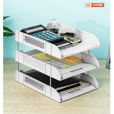 首页 > 办公用品 > 文具 > 得力deli三层文件盘9217(灰白色)加厚PS材质文件框文件架 桌面文件盘文件筐 资料文件架收纳架