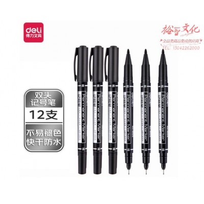 得力 6824 小双头记号笔 1.0-0.5mm 12支/盒 (单位:支) 黑SKU:yzwhyp876069