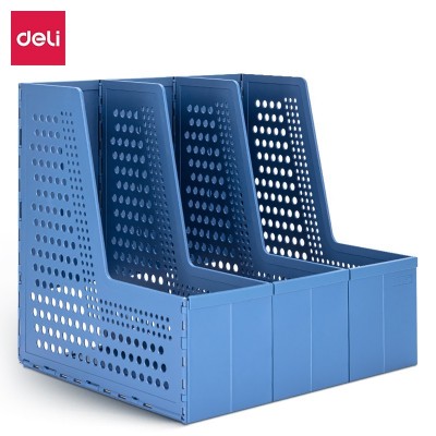 得力79005 三联折叠文件框A4(深蓝)(只)大容量文件夹书立文件架桌面档案资料