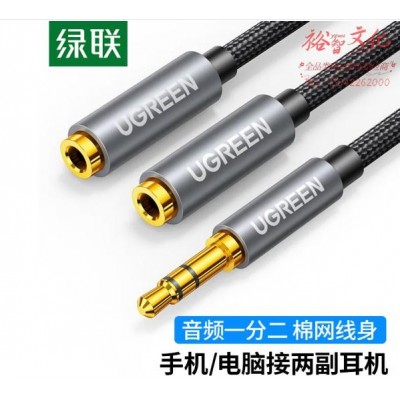 绿联(UGREEN) 3.5mm一分二音频线 1分2公对母情侣耳机线 AUX立体声分线器 手机音频转接头 棉网款SKU:yzwhyp876989