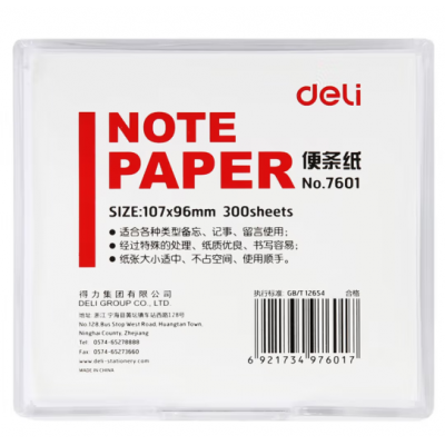 得力 Deli 7601 便条纸(107*96mm 白色 盒装)