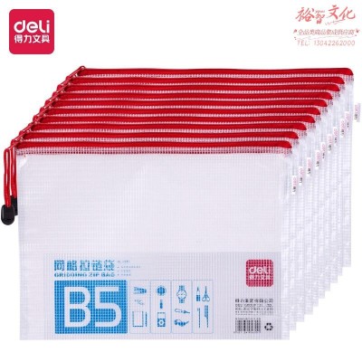 得力5655网格拉链袋(红)(10个/包,整包起售)SKU:yzwhyp877218