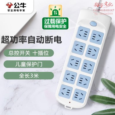 公牛(BULL)新国标插座/插线板/插排/排插/接线板/拖线板 10位总控全长3米超功率保护 GN-605SKU:yzwhyp877506