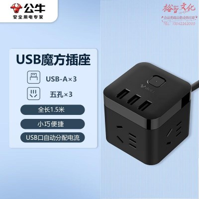 公牛(BULL) 魔方智能USB插座 插线板/插排/排插/接线板/拖线板 GN-U303H 黑色魔方USB插座全长1.5米SKU:yzwhyp877520