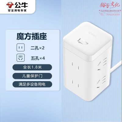 公牛(BULL) 大魔方插座 插线板/插排/排插/接线板/拖线板 GNV-UE2240 白色魔方6位插座全长1.8米SKU:yzwhyp877522