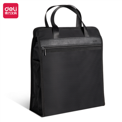 得力LU63760-8竖版公文包文件袋345*300*115mm(黑色)牛津布材质立体办公手提袋/会议包/事务包/文件包/商务拉链袋电脑公文包