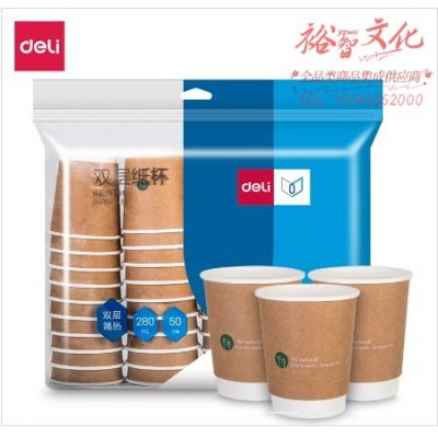 得力19209双层纸杯(棕)(280ml,50只/袋)SKU:yzwhyp878368