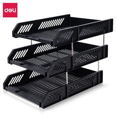 得力9209三层文件座(黑色)(只)三层镂空收纳文件座自由拆卸组装三层文件盘/文件框牢固耐用 桌面文件管理