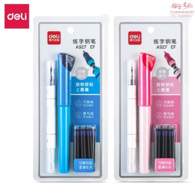 得力A927学姿钢笔套装EF明尖(混)(1支笔 1可擦笔 6墨/卡)SKU:yzwhyp878824
