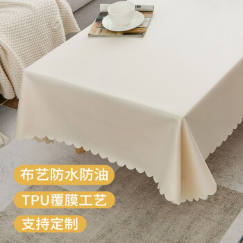 铭聚布艺(MINGJU) 餐桌布 防水防油TPU桌布 布艺台布餐桌垫定制茶几布米白90150cmSKU:yzwhyp879454