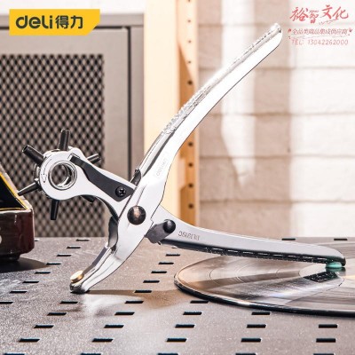 9寸光柄打孔钳6圆孔(银)(1/10/50)得力 钳子SKU:yzwhyp880684