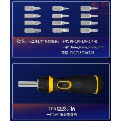 13件套多用棘轮螺丝批铬钒钢(黄)(1/12/48)得力 螺丝刀SKU:yzwhyp880922