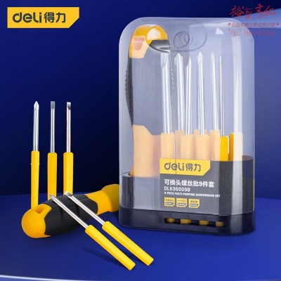 9件套螺丝批可换刀杆铬钒钢短款(黄)(1/-/48)得力 螺丝刀SKU:yzwhyp880927
