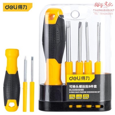 9件套(长款)螺丝批可换刀杆铬钒钢长款(黄)(1/-/30)得力 螺丝刀SKU:yzwhyp880928