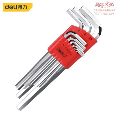 9件套工业级镜面彩虹加长平头内六角组套S2(红)(1/10/40)得力SKU:yzwhyp881027