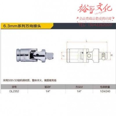 1/4寸6.3mm系列万向接头(银)(1/24/360)得力SKU:yzwhyp881912