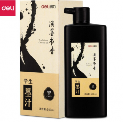 得力(deli)500ml特质浓墨 文房四宝书法国画绘画 毛笔书画字帖笔墨纸砚用墨 大瓶精品墨水墨汁 淡墨香款74293