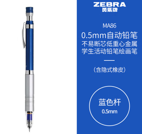 首页 > 办公用品 > 文具 > 斑马牌 (ZEBRA)0.5mm自动铅笔 不易断芯低重心金属学生活动铅笔绘画笔(含隐式橡皮)MA86 蓝色杆 (zhyghf_23099149)SKU:yzwhyp882496