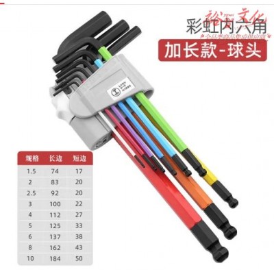 首页 > 建筑建材 > 五金附件 > 绿林(GREENER)内六角扳手套装彩色球头平头内六角极光加长球头9件套 (zhyghf_93500423)SKU:yzwhyp882705