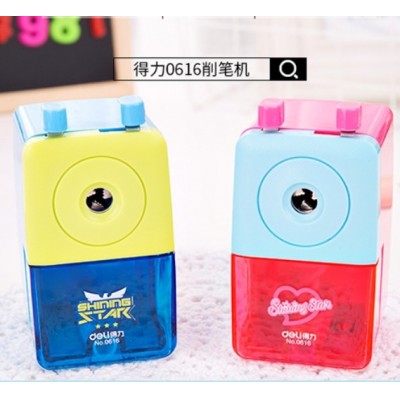 得力(deli)0616学生撞色款手摇削笔机/铅笔削笔器/转笔刀/卷笔刀 颜色随机