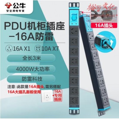 公牛(BULL)GNE-108DT 8位总控全长3米 16A大功率防雷PDU机柜插座 (zhyghf_221711892)SKU:yzwhyp884921