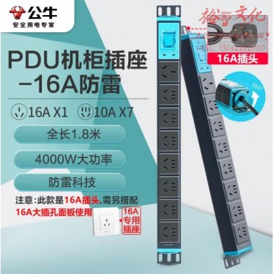 首页 > 建筑建材 > 开关插座 > 公牛(BULL)GNE-108DT 8位总控全长1.8米 16A大功率防雷PDU机柜插座/插线板/插排/排插/接线板/拖线板 (zhyghf_221711893)SKU:yzwhyp884922