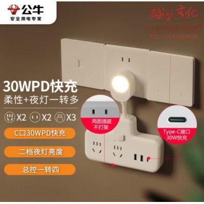 首页 > 建筑建材 > 开关插座 > 公牛(BULL)30W PD苹果快充柔性转换插头/一转四插座/无线转换插座/电源转换器 4位 USB 夜灯GN-97221Q30Y (zhyghf_221711956)SKU:yzwhyp884942